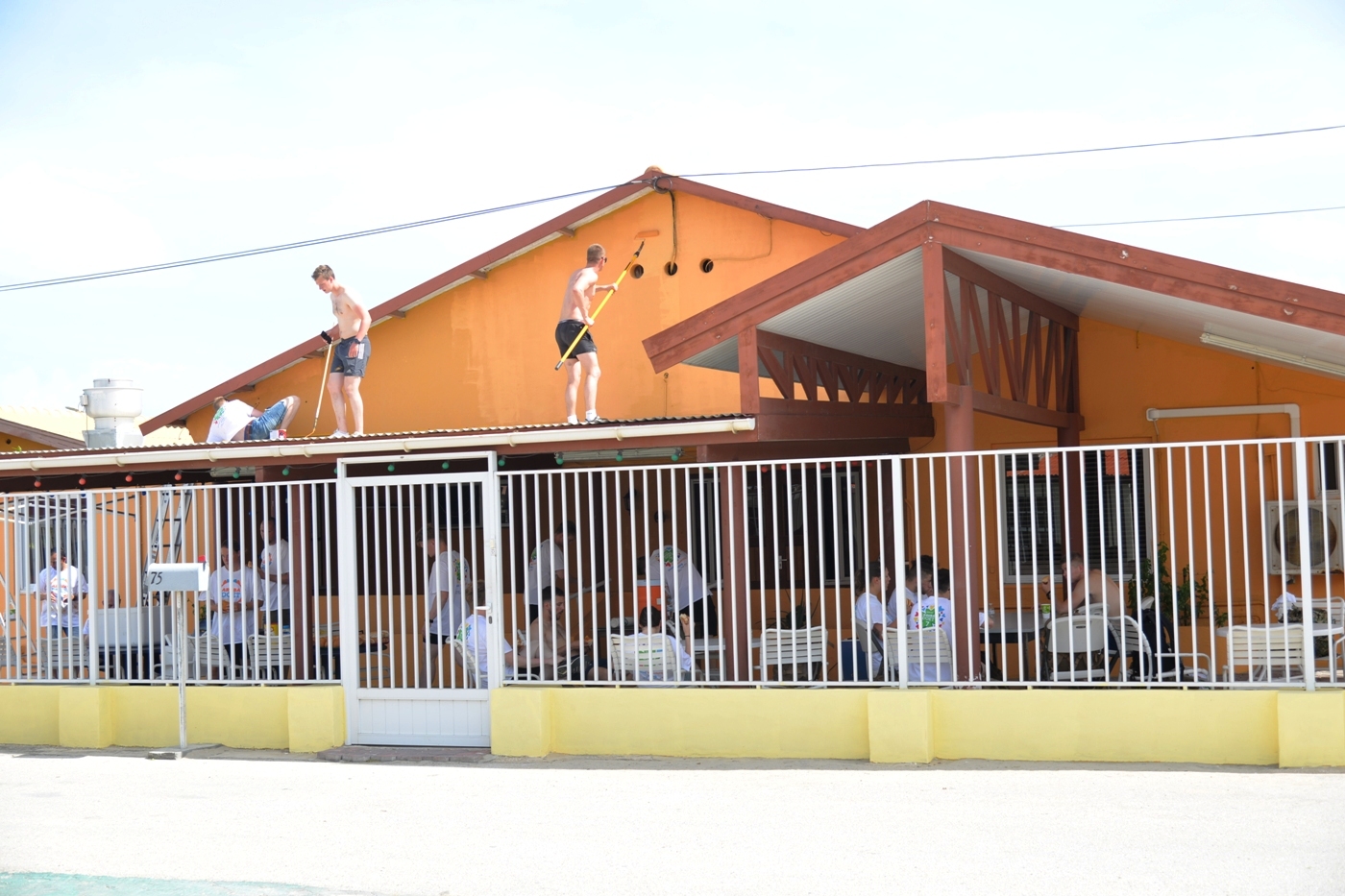 E verf mes ta un donacion cu Ambiente Feliz a ricibi di gerencia di WEB Aruba NV. Segun señora Croes, e proyecto aki a start na Aruba Doet cu boluntario di Arubaanse Voetbal Bond. Nan a pone e prome capa di verf, y awor cu e kadetnan aki a bin, nan a duna un man pa e muraya a ricibi di dos capa.
