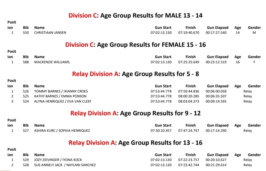 Resultadonan di e evento por mira riba e grafico. Un pabien na tur e participantenan y na e ganadornan.