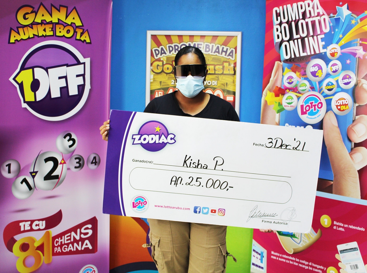 Recientemente Kisha a cumpra su numbernan pa Zodiac, y a gana tambe. Pesey riba Diabierna el a acudi na oficina di Lotto na Playa pa reclama su premio. El a entrega su ticket riba cual el a pone su firma y tambe number di cuenta di banco.