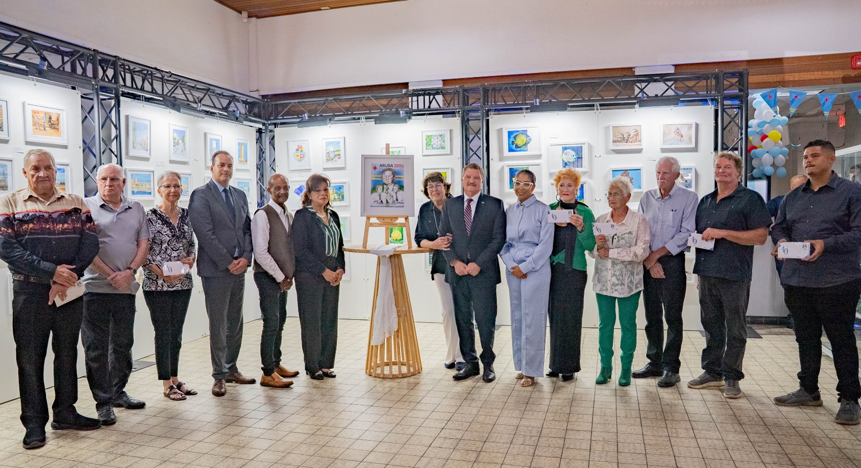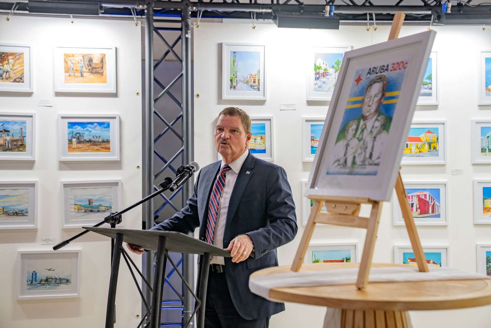ORANJESTAD (AAN): E stampia conmemorativo dedica na Henny Eman, prome Minister President di pais Aruba, no ta solamente un representacion visual, sino un interpretacion profundo di su caracter y legado, segun artista Nigel Matthews, responsabel pa e diseño.