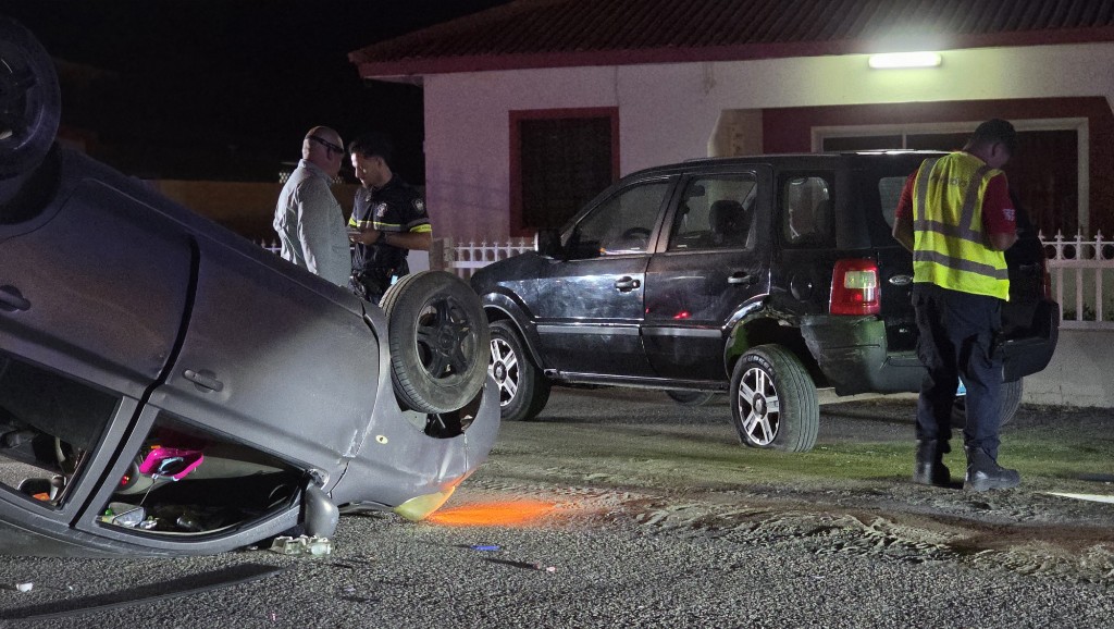 ORANJESTAD (AAN): Un accidente serio a tuma lugar Diahuebs anochi rond di 8’or na Spaans Lagoen, un tiki mas pariba di Mangel Halto. Un Nissan March cu un mama na stuur, cu su yiu chikito den auto, aparentemente a perde control y a dal contra un auto staciona y despues a bolter.