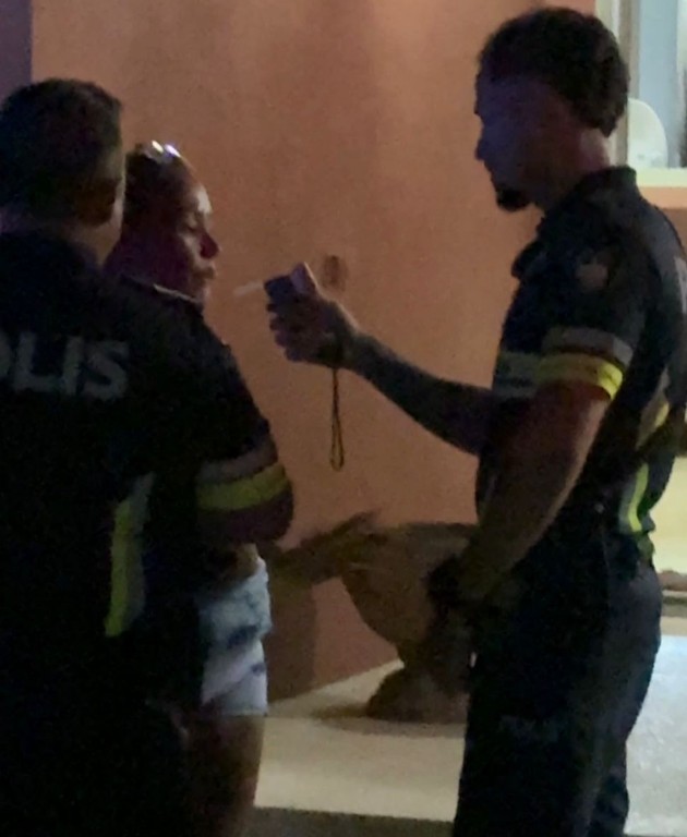 Polis di trafico a interveni, a haci e dama supla y a resulta cu el a bebe. El a wordo deteni y a warda pa transportwagen. Durante esaki, tata di e criatura a yega riba lugar pa bay cu e mucha, y tabatin un intercambio tenso di palabra.