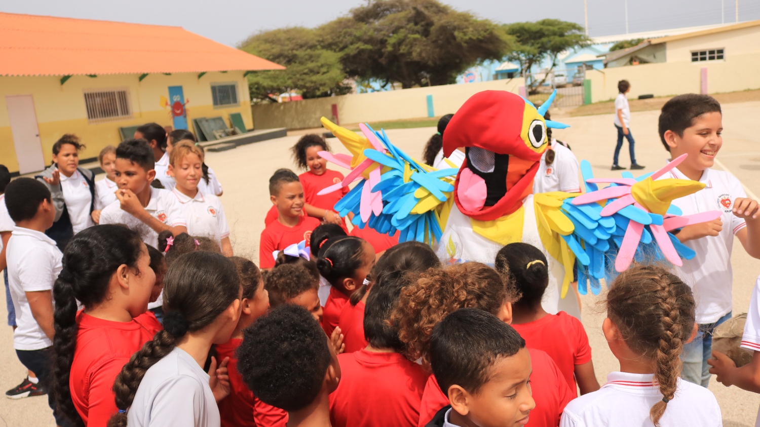ORANJESTAD (AAN): En conexion cu e siman di apertura di Weganan Escolar. Minister Endy Croes y WéWé e mascota di Weganan Escolar ta bishitando diferente scol basico rond di Aruba y dialuna ultimo a toca turno na Colegio Sagrado Curason na Savaneta.