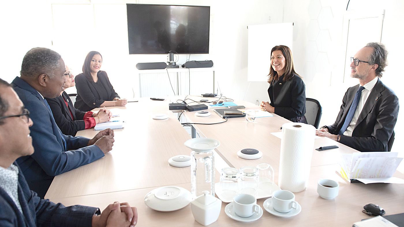 Durante e bishita, Minister Dowers a reuni cu Deputy Regional Director Guiseppe Mancinelli, Head of Programme William Gonzalez y Regional Director for Latin-American and the Caribbean, Dalila Gonçalves, pa discuti oportunidadnan di cooperacion y sostenibilidad den futuro proyectonan di reconstruccion.
