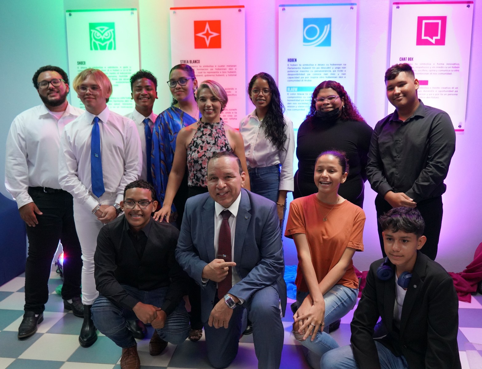 ORANJESTAD (AAN): Minister Endy Croes a presencia e bunita ceremonia di develo di e logo nobo di Parlamento Hubenil Aruba en conexion cu nan 20 aniversario na aña 2023.