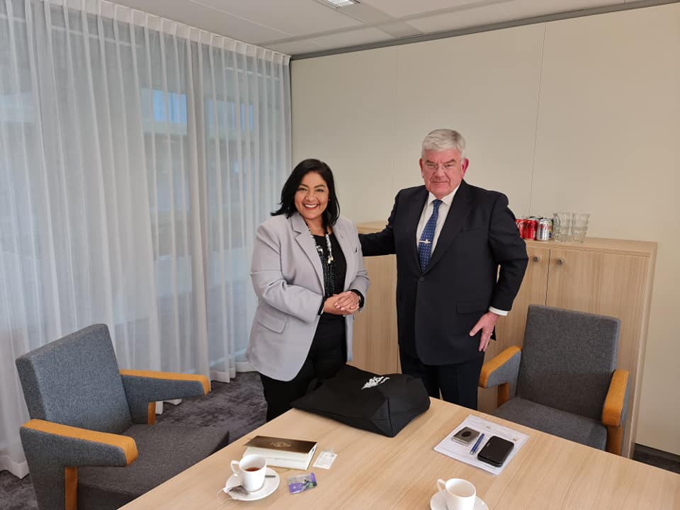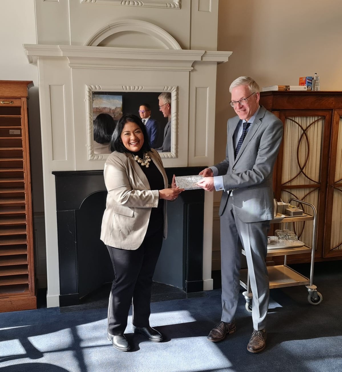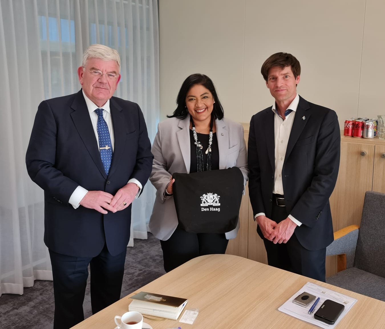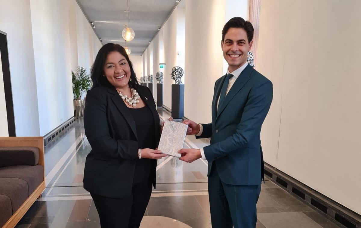 Na clausura hunto coleganan minister Tjon, Croes y tambe Minister Plenipotenciario Besaril a reuni cu Minister Rob Jetten pa desea e mandatario exito cu e reto cu tin su dilanti como minister di Clima y Energia di Hulanda. E meta tabata pa asina fomenta e bon relacion politico cu ta necesario pa bienestar di pais Aruba.