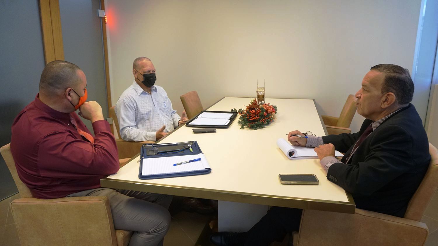 ORANJESTAD (AAN): Siman pasa Minister di Enseñansa y Deporte Endy Croes a continua cu reunionnan riba tereno di deporte, Minister Endy Croes a combersa cu representantenan di Aruba Boxing Commission, sr. Gregory Oduber y sr. Jessy Beukenboom.