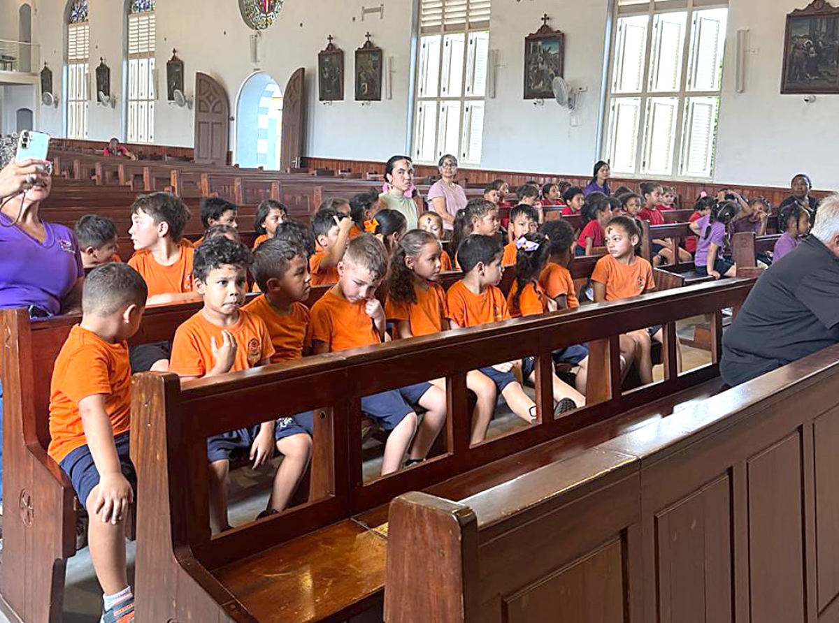 ORANJESTAD (AAN): Riba Diaranson mainta, muchanan di scol a yega te den Misa Santa Anna na Noord, pa asina nan a ricibi cruz di shinishi.