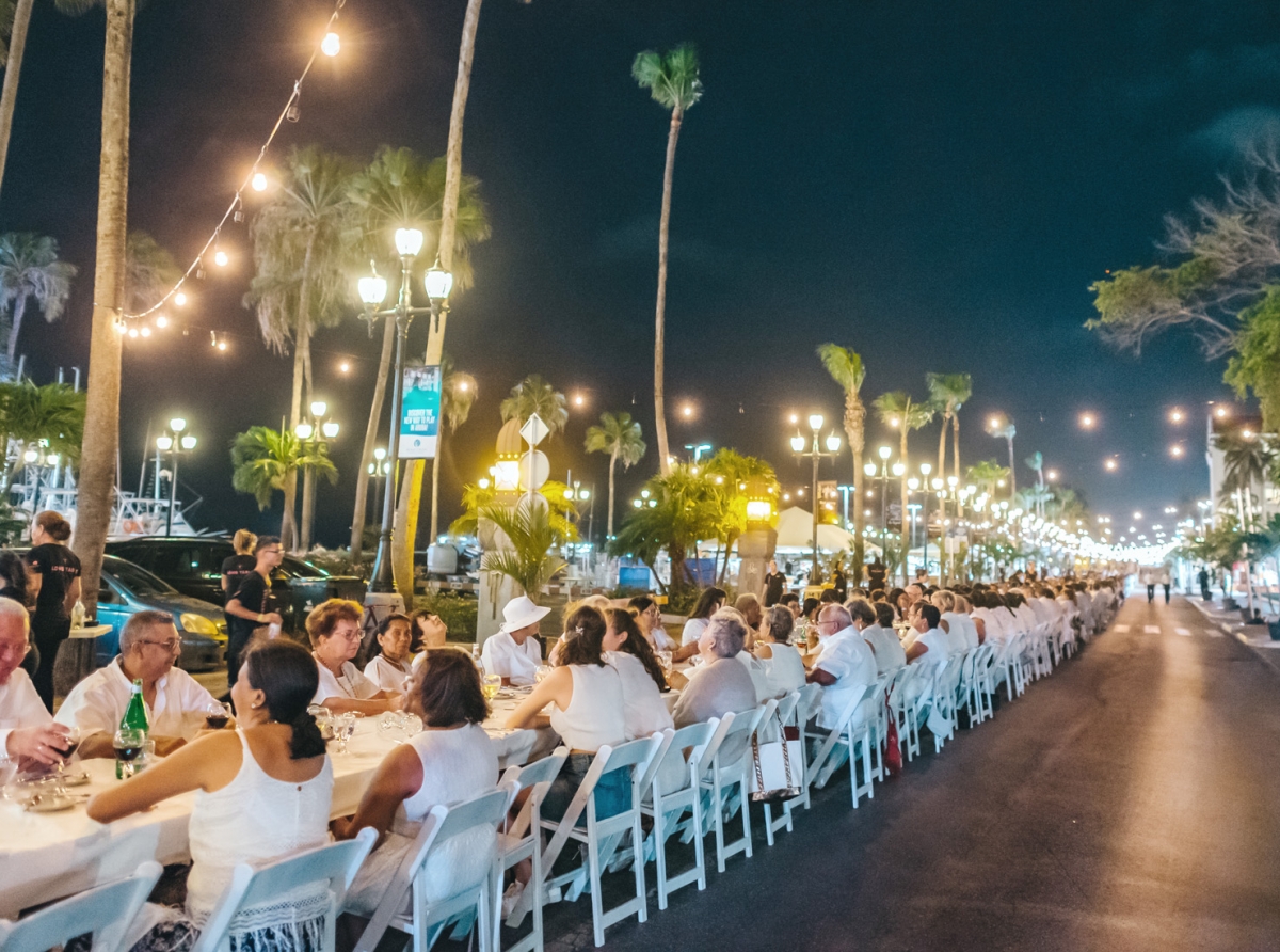 E unico mesa di cena di mas largo completamente blanco cu un balor di $40.000 na Aruba! Tickets pa e evento aki por worde reserva via telefon entrante Diaranson 15 Juni 2022 for di 9:00 am te cu 4:00 pm. Cada persona lo tin un maximo di 10 tickets cu e por reserva.