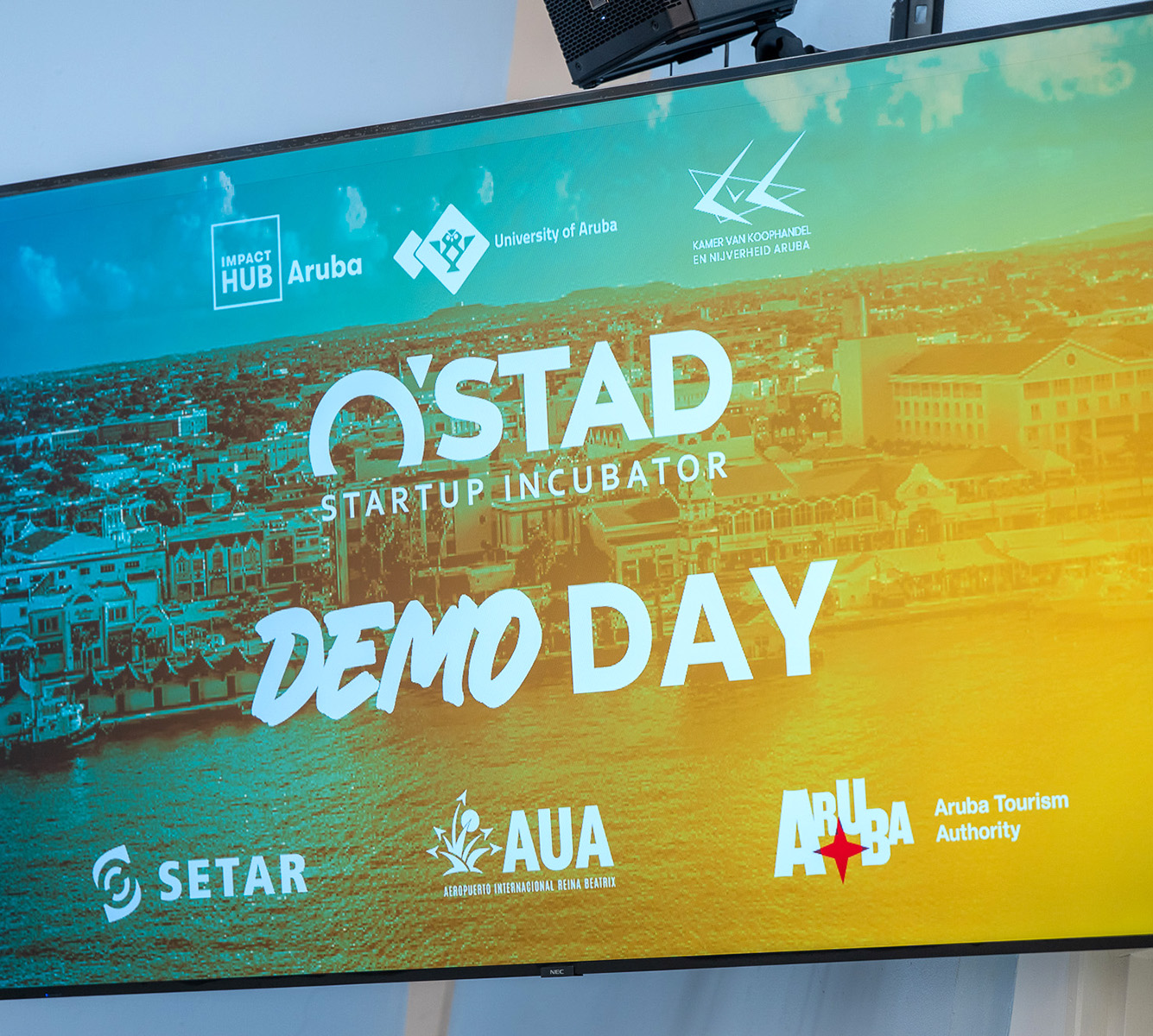 E O’STAD Incubator ta un iniciativa di Impact Hub Aruba, den colaboracion cu Universidad di Aruba y Camara di Comercio, y ta wordo patrocina door di SETAR, Aruba Airport Authority y Aruba Tourism Authority.