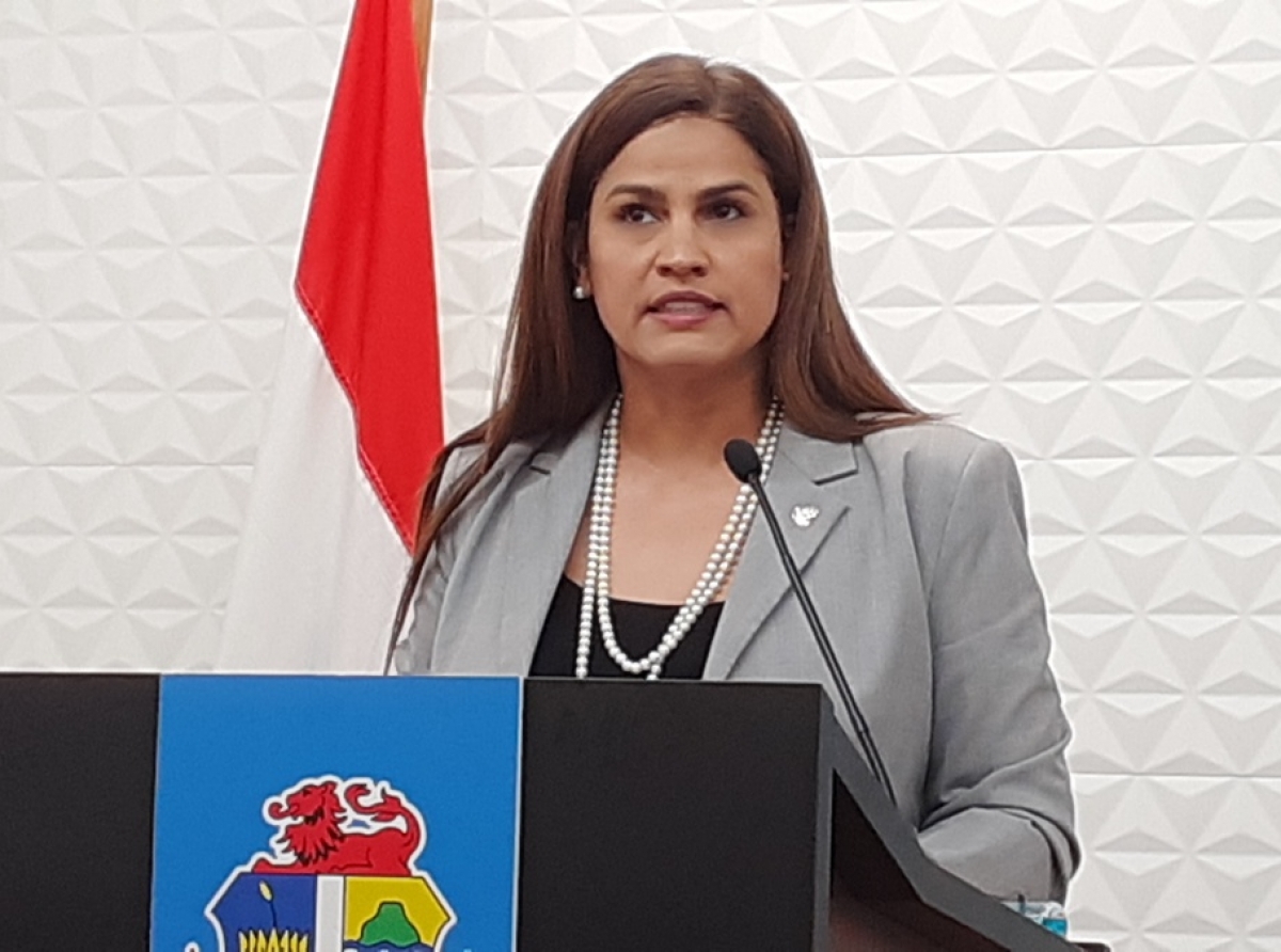 ORANJESTAD (AAN): Sue Ann Ras, Lider di e proyecto Codigo di Proteccion di Mucha y Hoben a duna di conoce durante un conferencia di prensa cu e ley aki