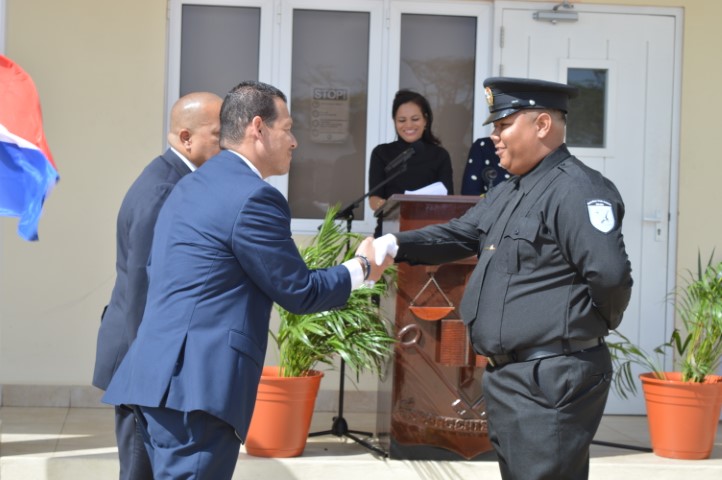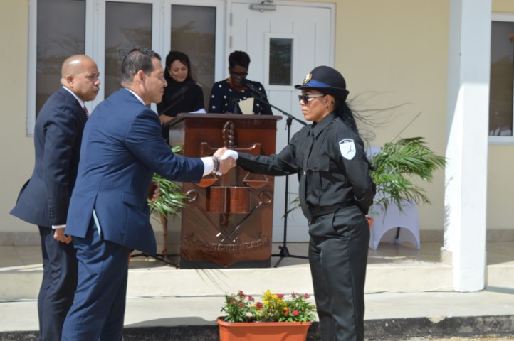 ORANJESTAD (AAN): Durante un ceremonia na Centro di Educacion di KIA na Balashi a tuma luga huramentacion di cinco funcionario di Guarda nos Costa y un cantidad di funcionarionan di KIA cu a participa den un curso basico di Gevangeniswezen, cada uno den nan area specifico, stranheria y prizon. E novum den esaki tabata participacion di cinco miembro di Guarda Nos Costa, cu ta cay bou guia di Richard Kramers.