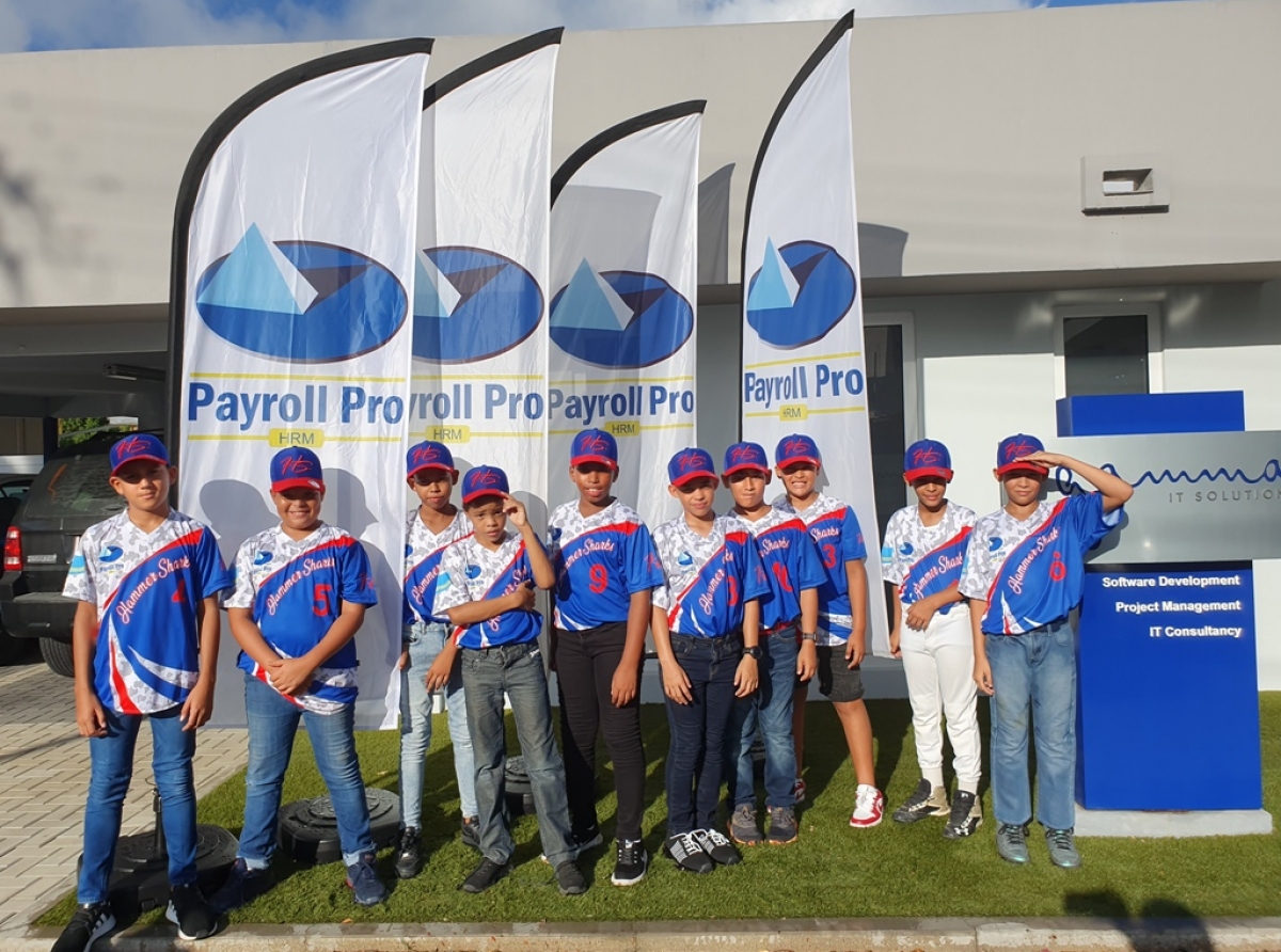 ORANJESTAD (AAN): Diahuebs, 4 november a tuma lugar e bautismo di e uniform nobo di HammerSharks Baseball Organisation team 11-12 aña patrocina pa Payroll Pro HRM.