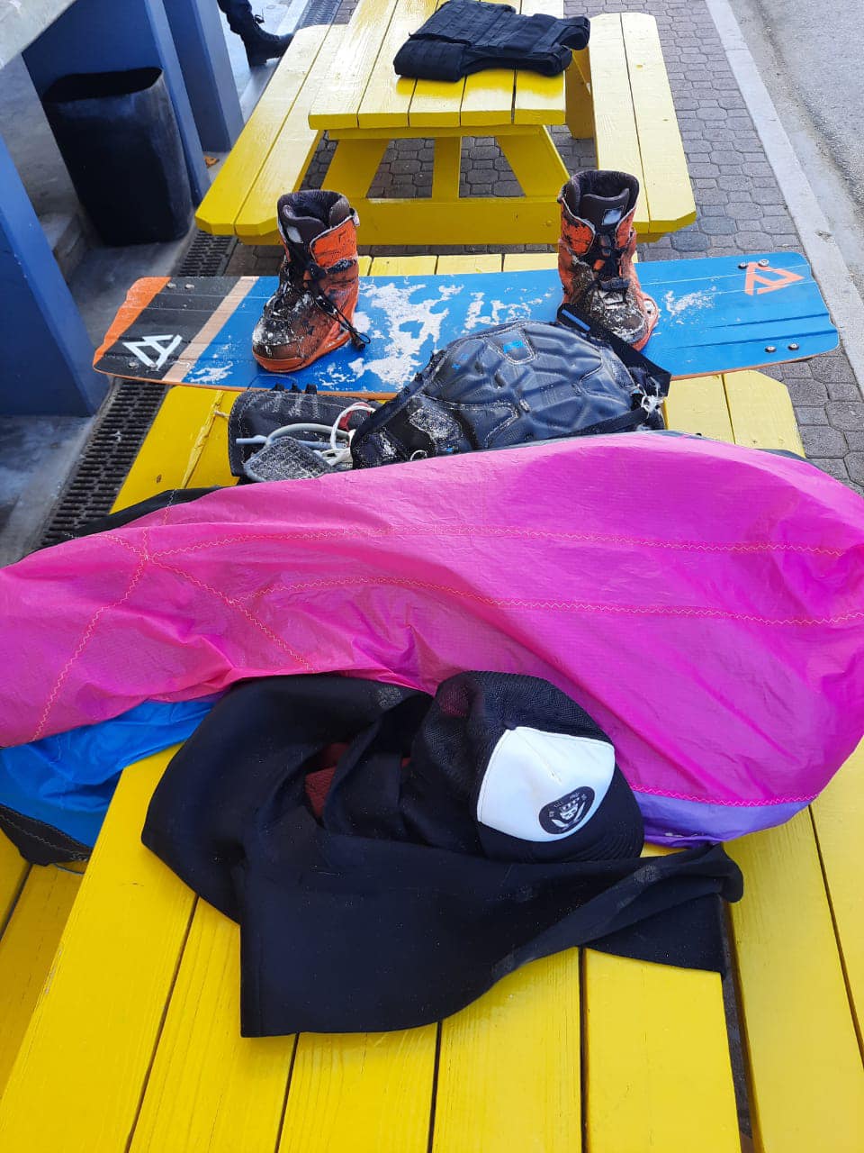 Esta con hendenan a mira un Kitesurfer cu fli color oranje ta bayendo direccion zuid rumbo pa Venezuela y el a hasta desaparece na horizonte.