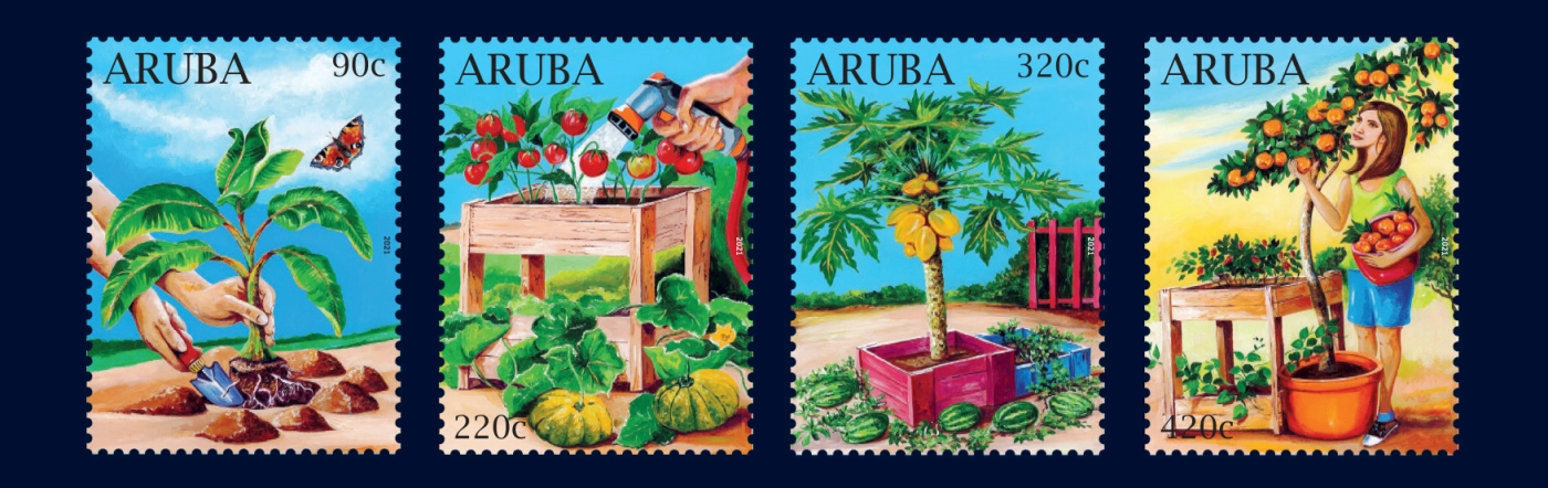 ORANJESTAD (AAN): Awe 16 di november 2021, Post Aruba N.V. a emiti un serie di stampia nobo. E serie aki yama “Agricultura” y ta diseña pa Sr. Elvis Tromp.