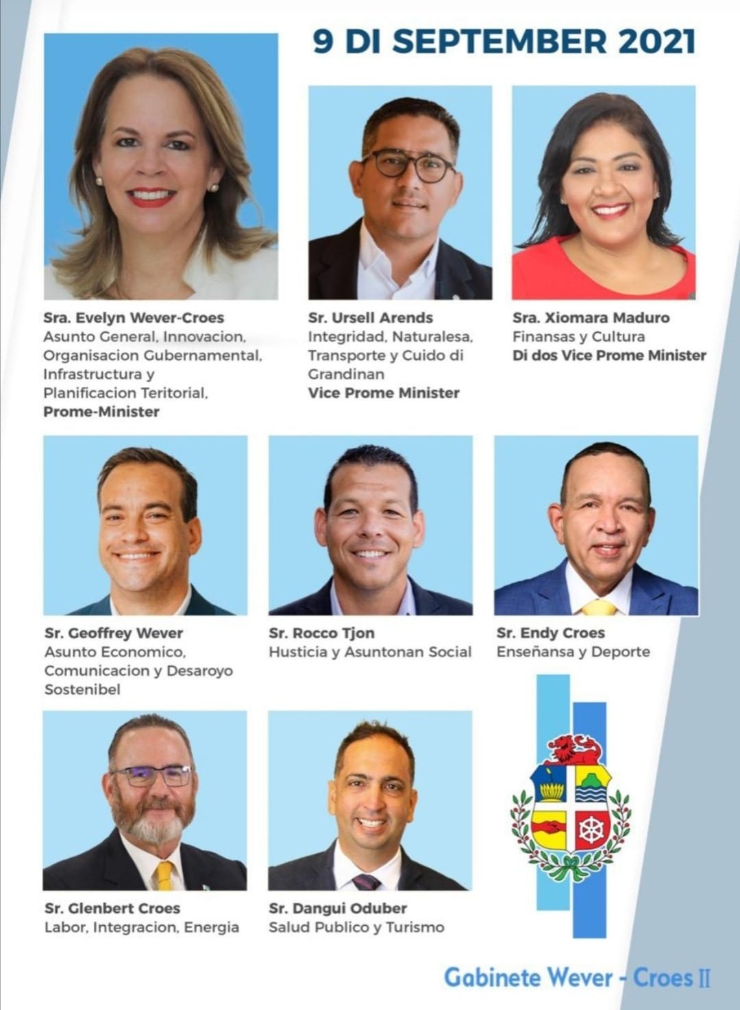 - Dangui Oduber: Salubridad Publico y Turismo. “Aki tambe nos a scoge pa continuidad y experiencia pasobra ambos cartera ta esnan mas afecta door di e pandemia y e retonan ta grandi; y experiencia di ultimo añanan ta hopi necesario den e temporada nos dilanti”.