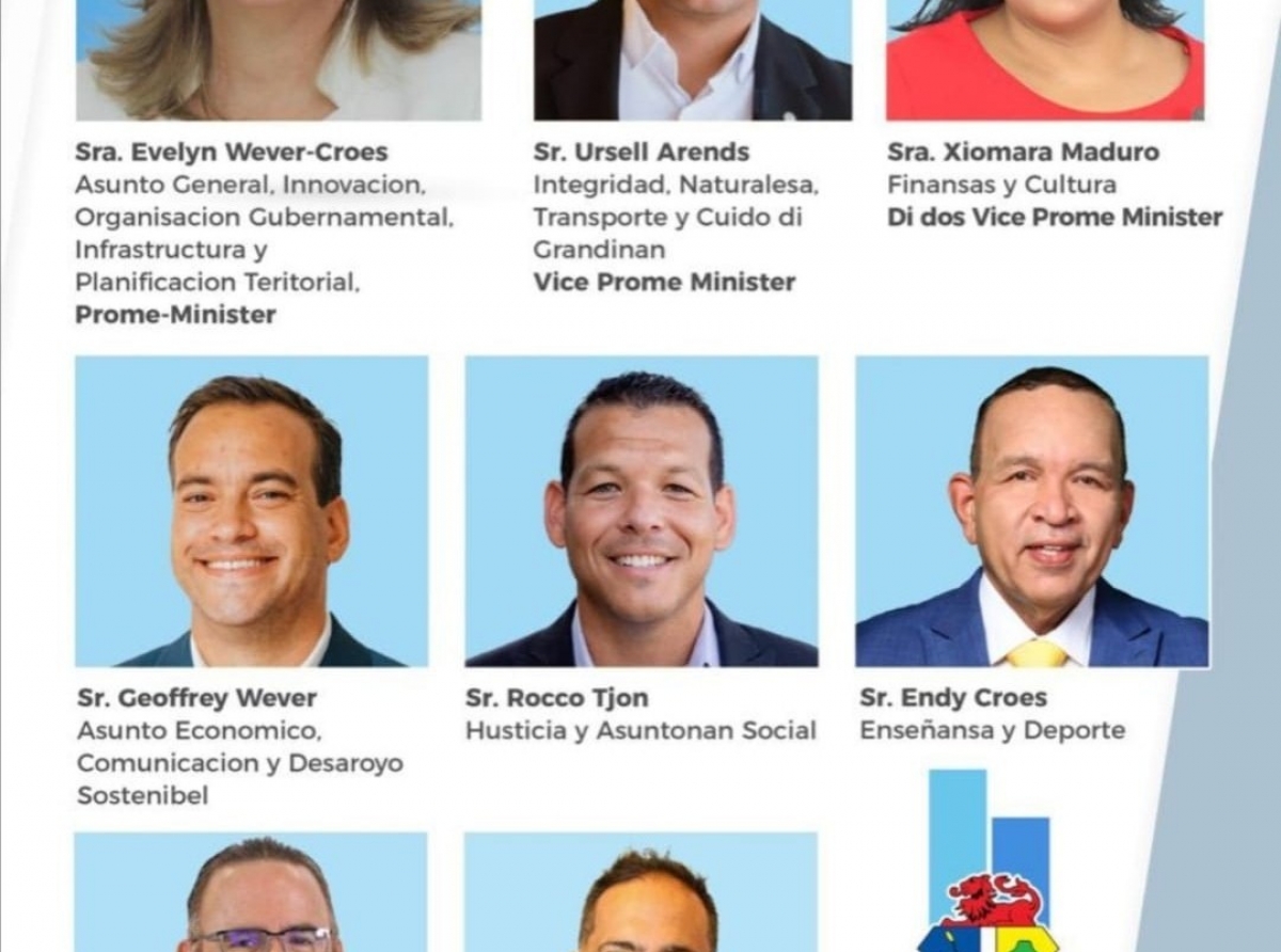 - Ursell Arends: Integridad Naturaleza, Transporte y Cuido di Grandinan, y a la vez, Vice Prome Minister. “E lo enfoca riba e retonan den cada un di e areanan aki den e tempo nos dilanti, cu mester bay man den man cu e desaroyo di nos pais”.