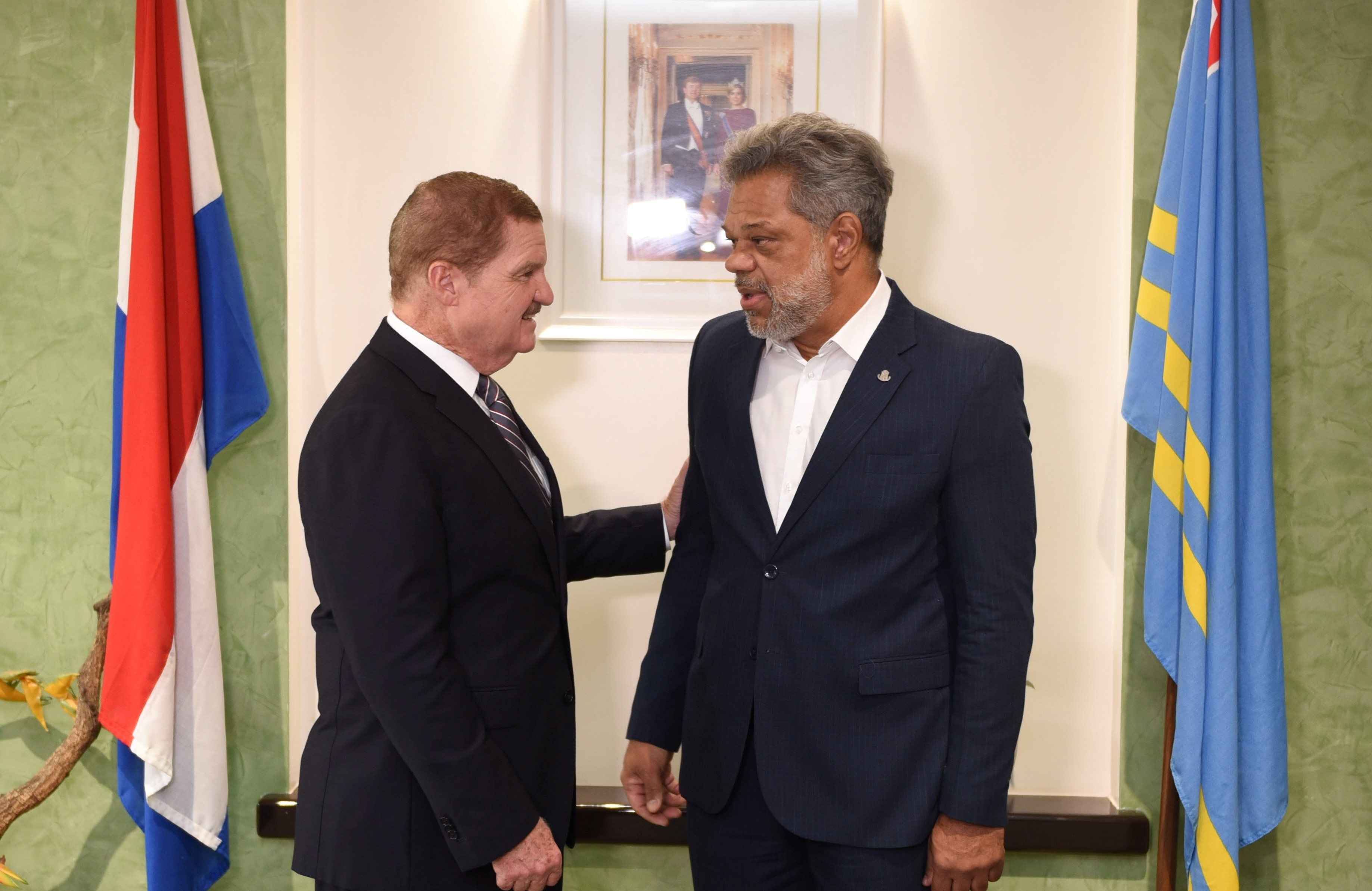 ORANJESTAD (AAN): Diaranson, Prome Minister di Sint Maarten Luc Mercelina a yega Aruba y a wordo ricibi pa Prome Minister di Aruba mr. Mike Eman.