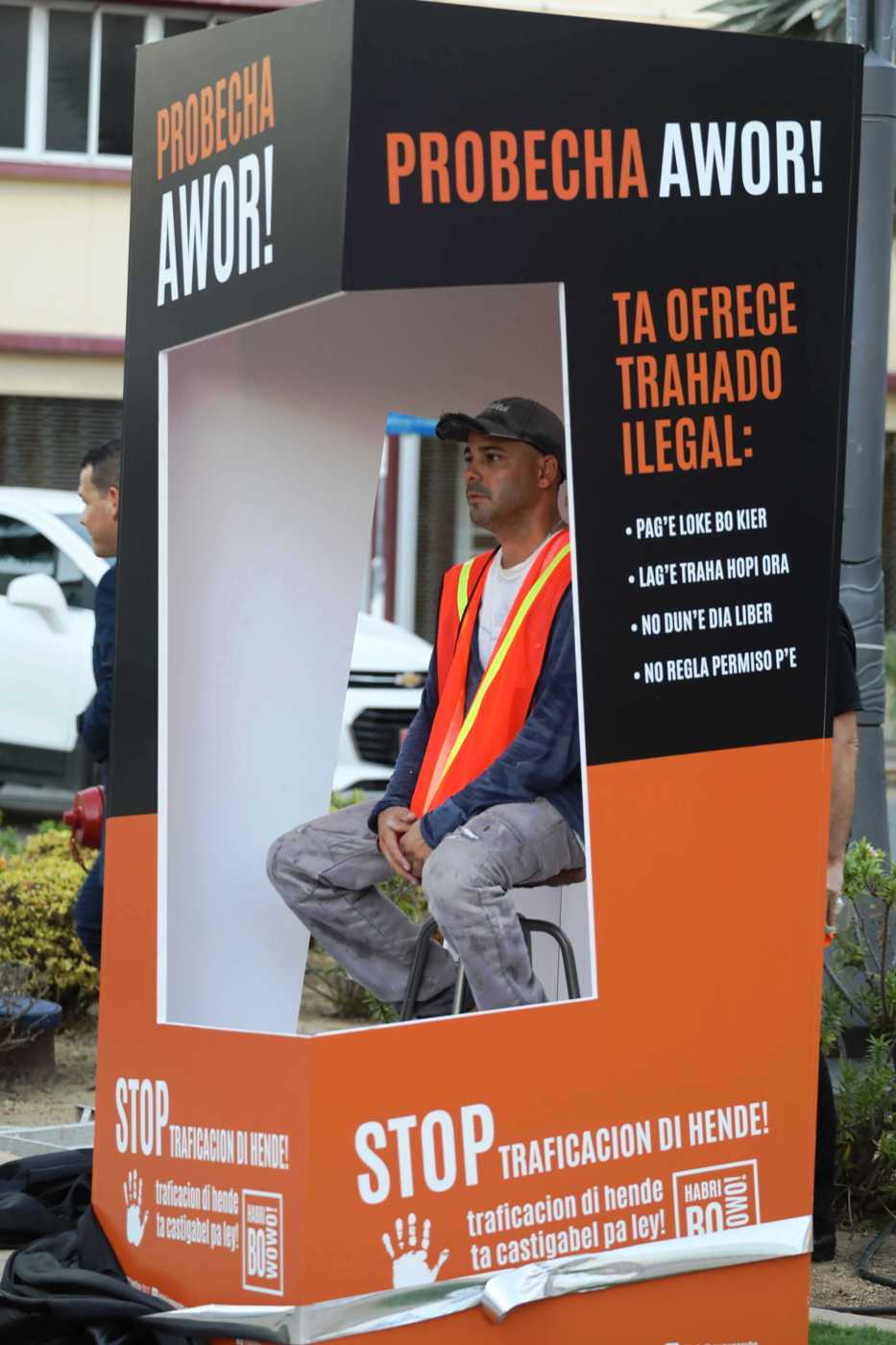 “Como Gobierno responsabel, no por para na banda y laga esaki pasa. P’esey, e campaña di conscientisacion Habri bo Wowo ta asina importante, pasobra ta trata aki di abuso di hende y nos mester para y purba evita cu esaki ta pasa den nos país, sea cu migrantenan of cu nos mes hendenan. Nos kier desaroyo na Aruba pa tur hende sin laga ni un hende atras. Nos kier pa Aruba progresa.”, Prome Minister a enfatisa.