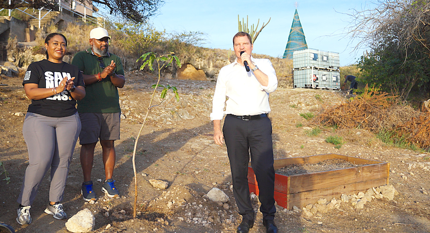 “Nos kier a gradici tur hende cu a contribui cu nan tempo, energia y recurso pa haci esaki posibel. Sin boso, esaki no tabata bira realidad!” e mandatario encarga cu medio ambiente y naturalesa a exclama. Ademas di palabra inspirador e boluntarionan a haya certificado di aprecio. Prome Minister mr. Mike Eman hunto cu e boluntarionan y su consehero pa maneho di naturalesa y medio ambiente Francielle Lacle a planta un mata di fruta pa culmina e inauguracion.
