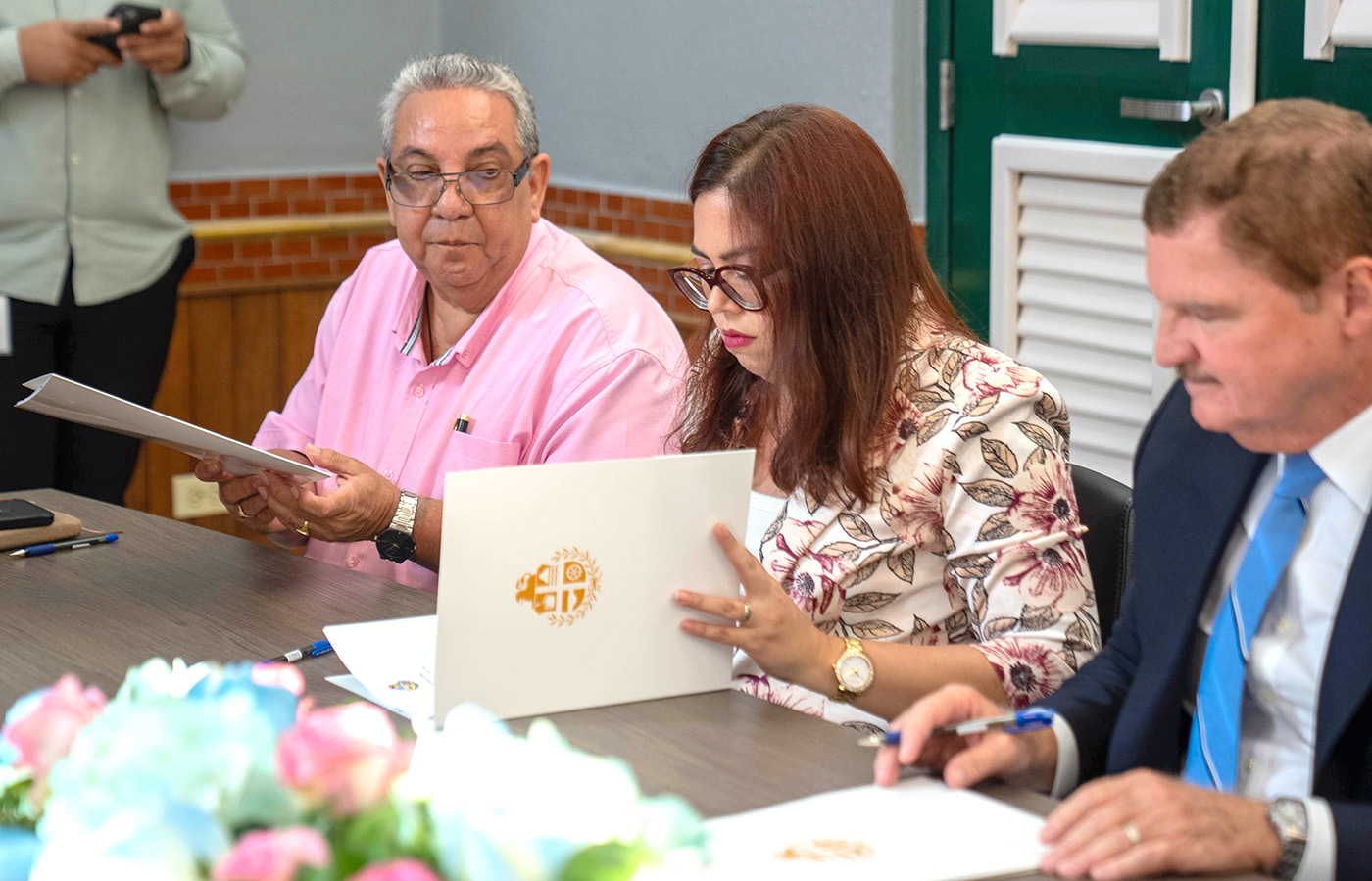 Minister di Enseñansa y e sindicatonan Simar, TOPA, y Seppa a logra esaki awe. Sin laga afo e espacio financiero cu Minister di Finansa mr. Geoffrey Wever ta crea pa asina logra e prome fase di e restructuracion aki. Simbolicamente a firma e declaracion aki den e edificio historico di Algemene Rekenkamer cu ta Aruba su prome Scol Publico.