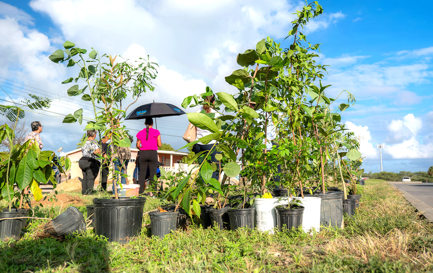 Di Santa Rosa Nursery, a haya 5 Flamboyan, 5 Pal’i Boonchi, 5 Kibrahacha, 5 Huliba, 5 Watapana, 3 Amandel, 3 Macapruim, 3 Druif’i Lama, y 5 Ratonero. For di Agro Aruba Garden a haya 3 Mispel, y 3 Cashew Cora.