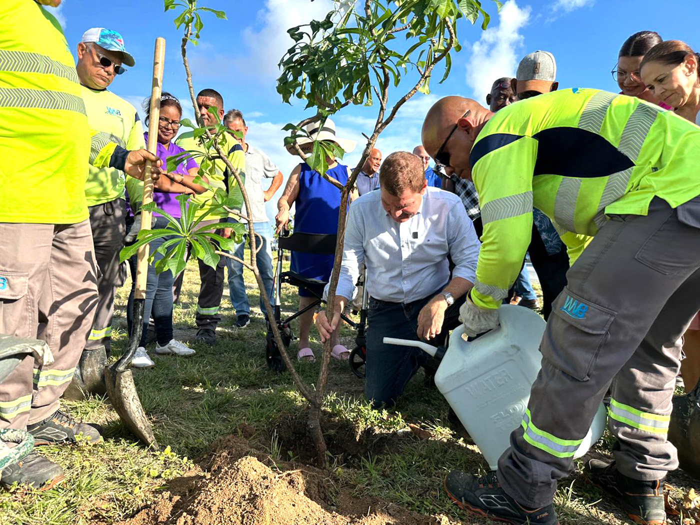 ORANJESTAD (AAN): Diaranson mainta a tuma luga un sesion di plantamento hunto cu e residentenan di Maracastraat den Dakota, como parti di e Programa Nacional di Reforestacion (NRP). E programa piloto aki ta un colaboracion entre Ministerio di Asunto General, Cultura, Ambiente y Naturalesa (MinAZ), Departamento di Obranan Publico (DOW), Departamento di Naturalesa y Medio Ambiente (DNM), y ehecucion di proyecto Watty Vos Boulevard (WVB).
