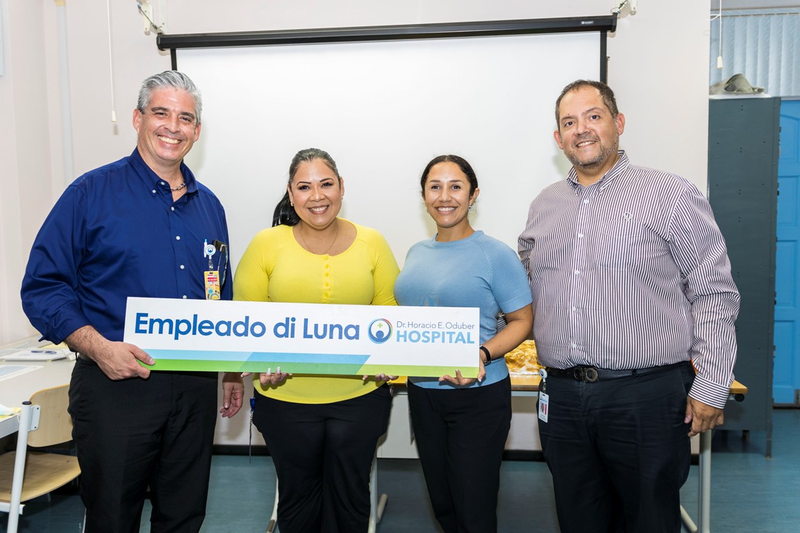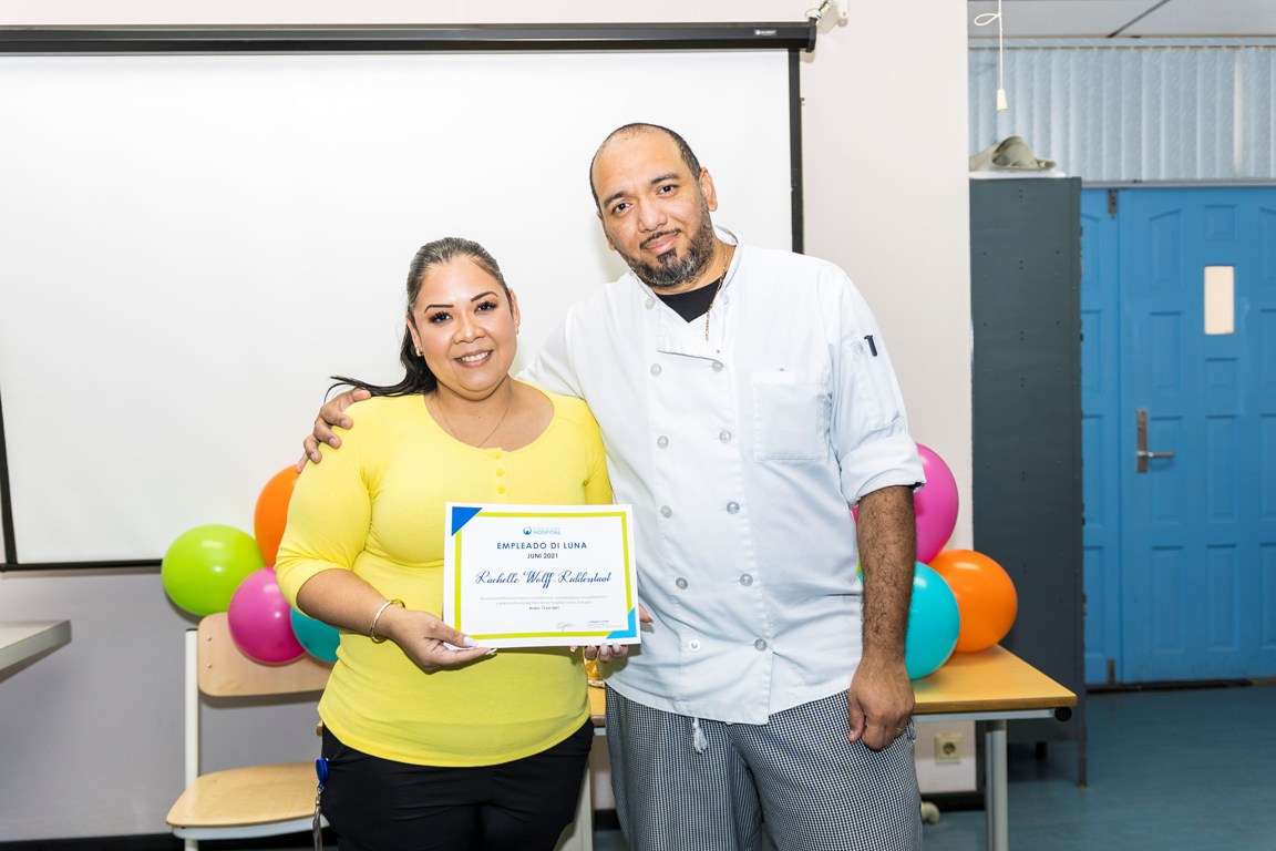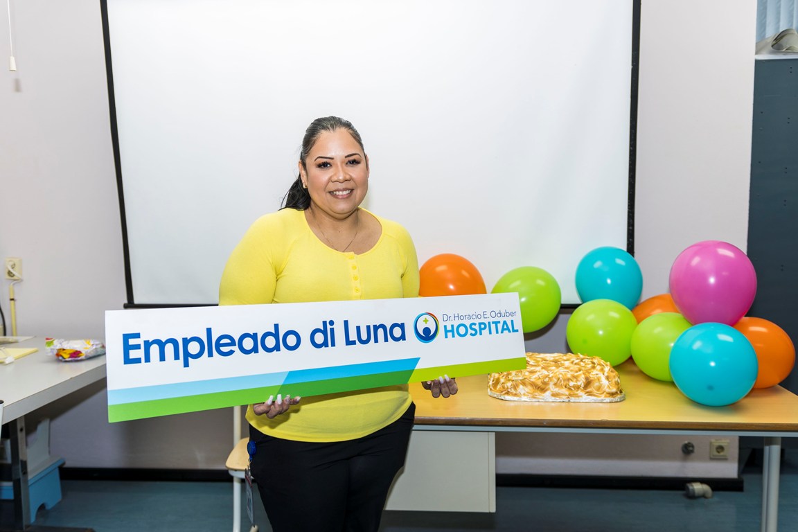 ORANJESTAD (AAN): Den un ambiente masha ameno coleganan di Rachelle Wolff-Ridderstaat a bini hunto pa sorprend’e cu ela bira e empleado di luna di juni 2021 na Dr. Horacio E. Oduber Hospital.