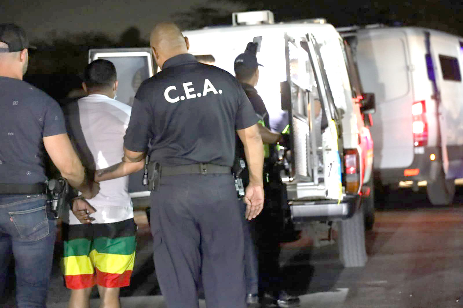 Na final, e vehiculo special di transporte di Polis a ser usa pa transporta diferente detenido rumbo pa Warda di Polis.