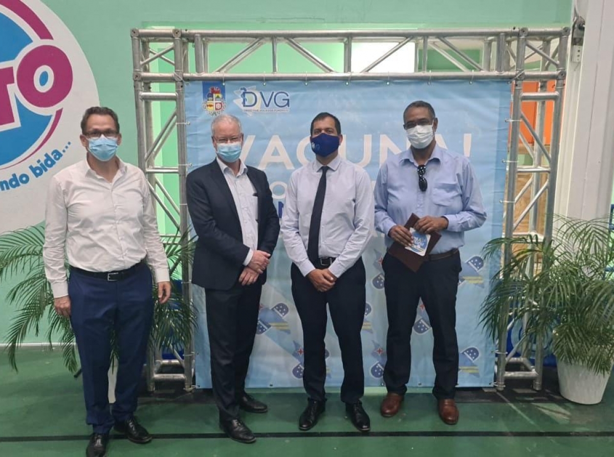 ORANJESTAD (AAN): Diabierna dia 16 di april, Aruba a ricibi bishita di un delegacion di Hulanda esta e 'gezant vaccinatie' y e 'beveiligingscoordinator' cu a bin Aruba pa tuma nota di e proceso completo di e programa di vacunacion na