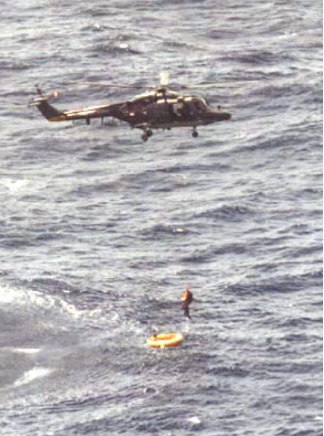 Mas ora pasa den casonan asina, menos e chens riba sobreviviente ta. Rat Air cu den trabounan di rescate ta opera bou e nomber Pluto-3 e ora tabata wordo considera un parti di Marina Real cu tabata haya tur e credito. Pero ta e dos pilotonan aki tabata e promenan pa spot e dos hombernan den awa.