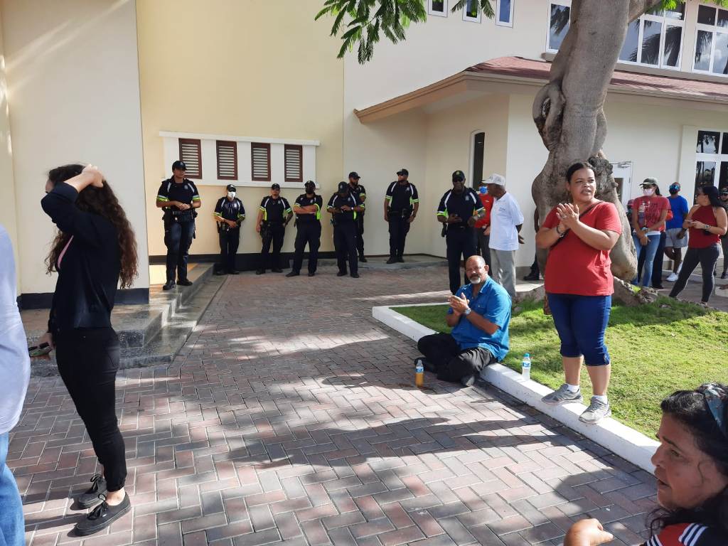 ORANJESTAD (AAN) – Diahuebs mainta, sindicatonan cu ta representa empleadonan publico, a bolbe sali caya mustra nan descontento, pasobra nan ta sinti cu gobierno no tin intencion di reembolsa e 12.6% di nan salario.