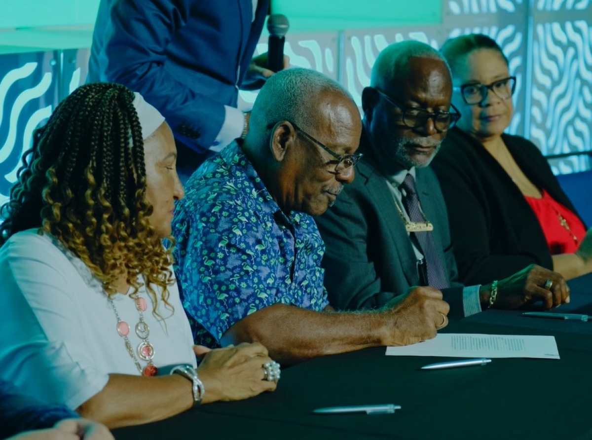 ORANJESTAD (AAN): Un momento significativo a tuma luga ora representantenan di Stichting Bernhardstraat a firma oficialmente, dilanti notario, e acta pa bira formalmente un fundacion.