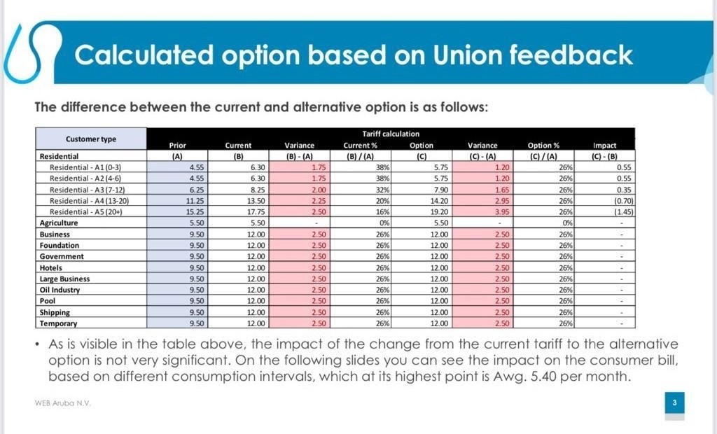 Durante e reunion WEB a bin bek cu e proposicion, aproba pa Gobierno di Aruba, pa honra peticion di e sindicatonan: ta bolbe reduci e aumento di tarifa di awa entrante 1 di September igual pa tur.