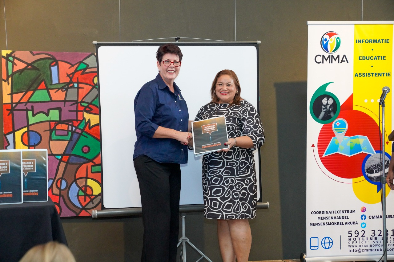 “Ban hunto yuda proteha nos hobennan. Nos ta conta cu boso colaboracion den esaki. Habri bo wowo paso traficacion y contrabando di hende ta pasa mas cerca cu bo ta kere!”