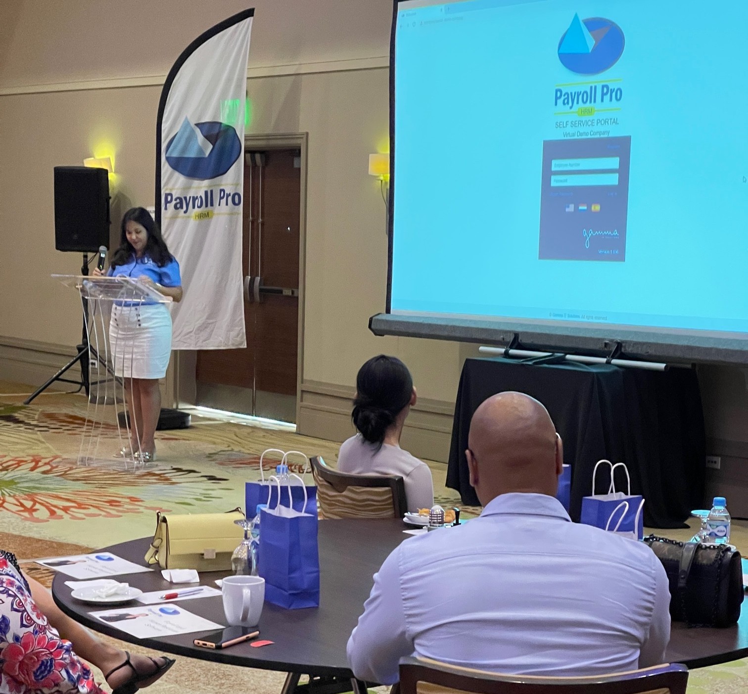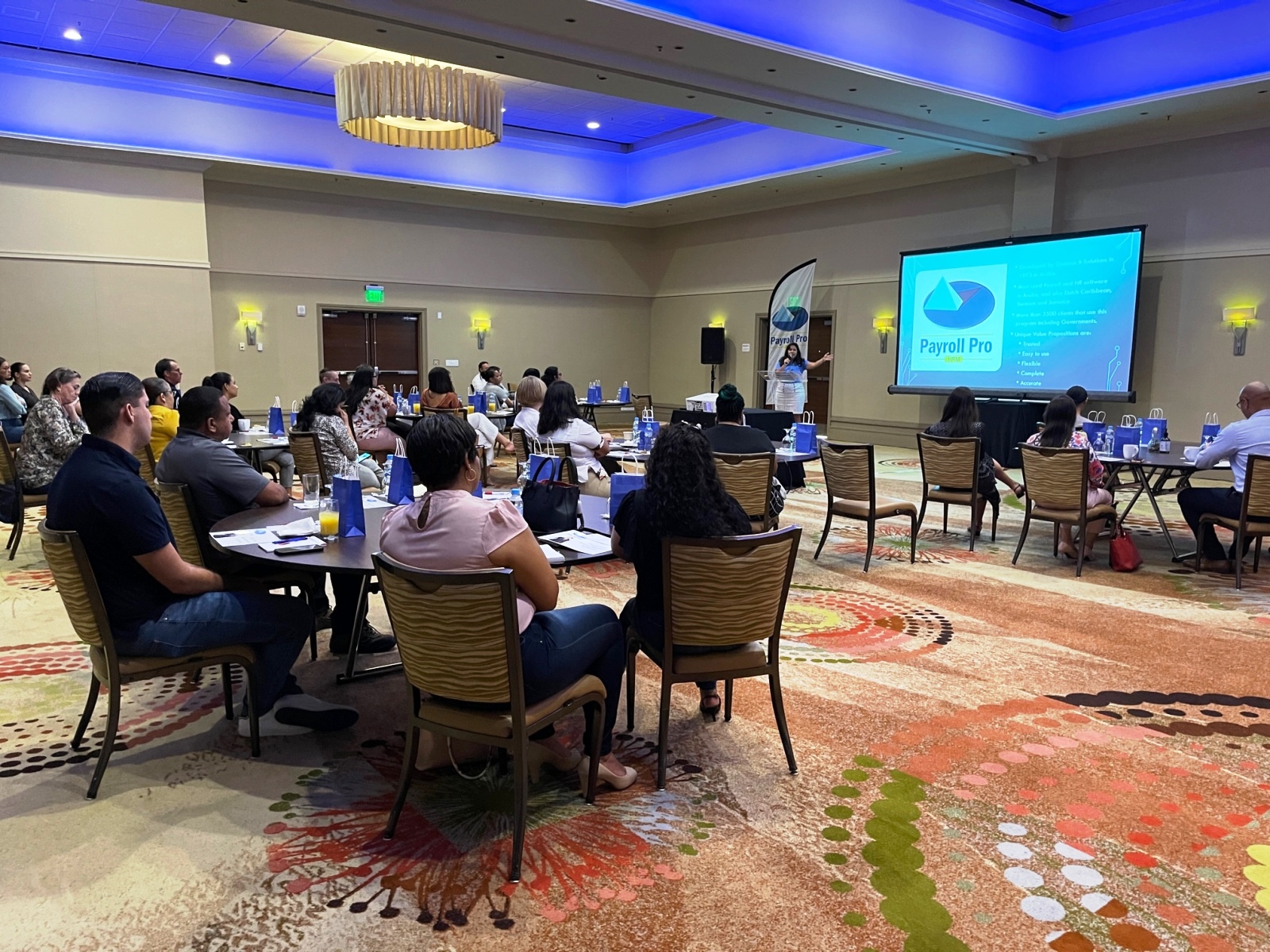 ORANJESTAD (AAN): Den e grand ballroom di Aruba Marriott Resort & Stellaris Casino diabierna ultimo dia 13 di mei, e ekipo di Payroll Pro HRM a demostra na e interesadonan con pa traha cu e mobile app nobo.