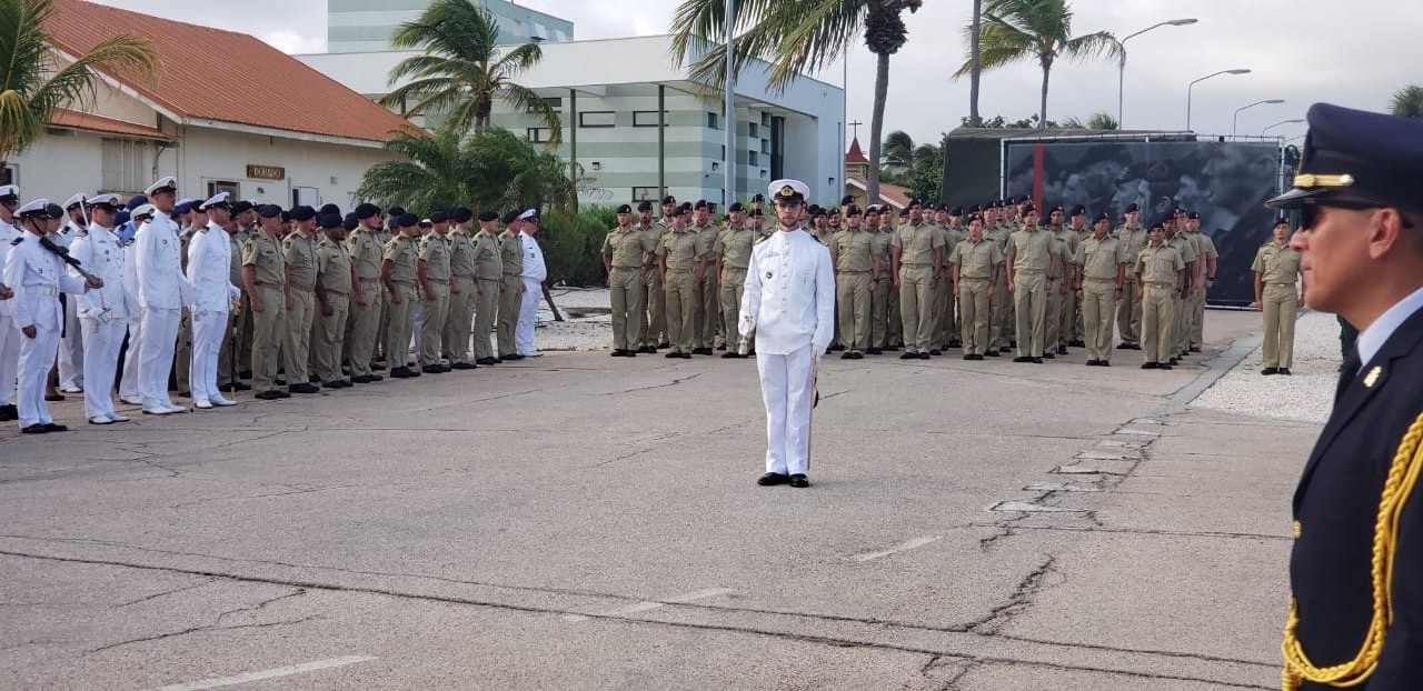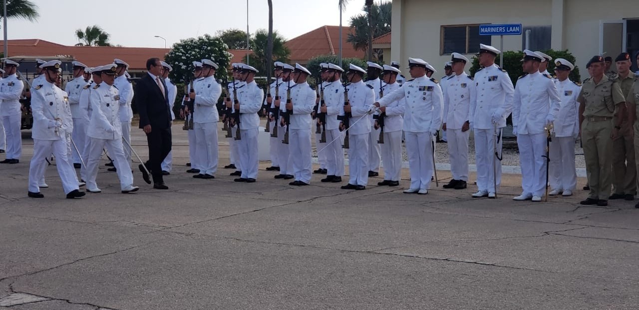 “For di e Kazerne aki nos tabatin hopi implementacion exitoso di e Scuadron di Marina Caribe y e Mariniernan arubiano hunto cu Guardacosta Region Caribe Hulandes y tambe Cuerpo Policial Aruba, cu e fin di salvaguardia e integridad di e fronteranan y e mantencion di orden publico y siguridad.