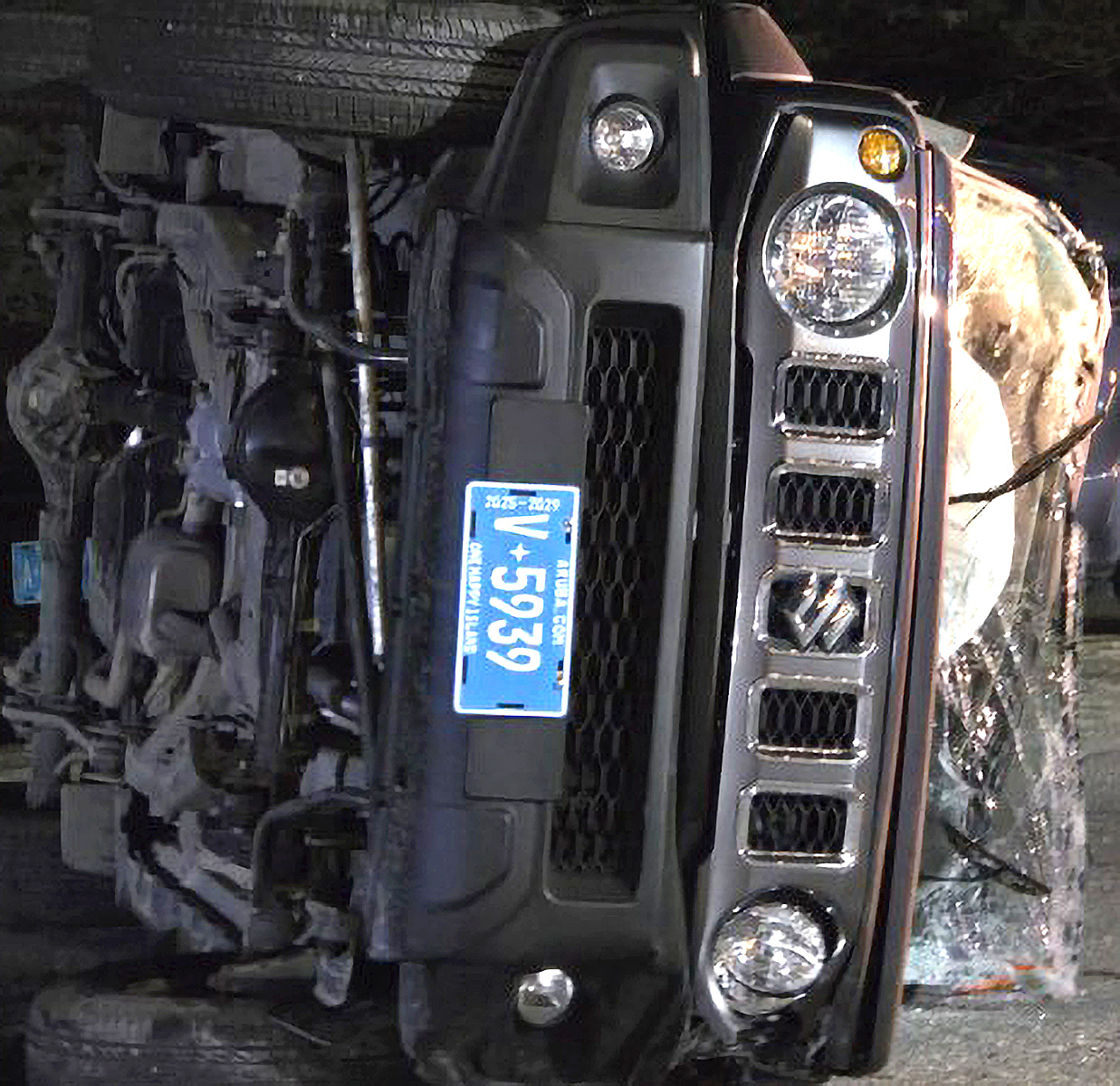E prome unidad di Polis di Noord cu a yega, a bin topa meymey caminda un vehiculo Suzuki Jimny color preto scur cu number V-5939 cu a kenter. E ocupantenan cualnan ta turista no tabata herida.