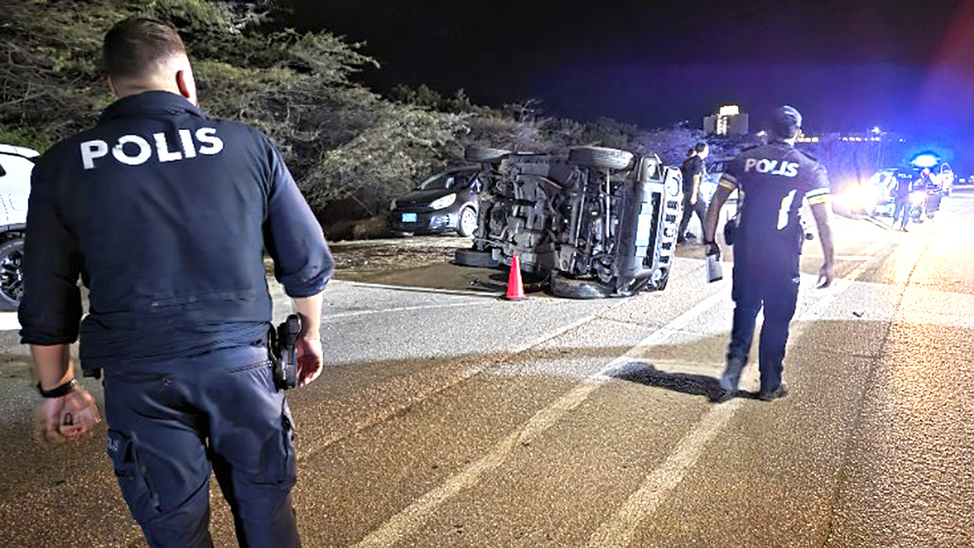ORANJESTAD (AAN): Diasabra marduga algo prome cu 4:00 am, un patruya di Polis a bay pura poco pariba di Olde Molen pa un accident serio, y cu un vehiculo a bolter.