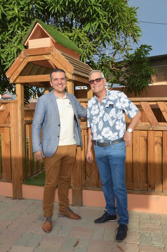 ORANJESTAD (AAN): Famianan y amigonan di e bario di Piedra Plat cu ta biba pafo di Aruba a uni pa pone placa hunto pa cumpra un schommel y glijbaan di bon calidad pa e muchanan di bario di Piedra Plat y bisindario, Oansa y CEC Basisschool por hunga na un manera sano y safe.
