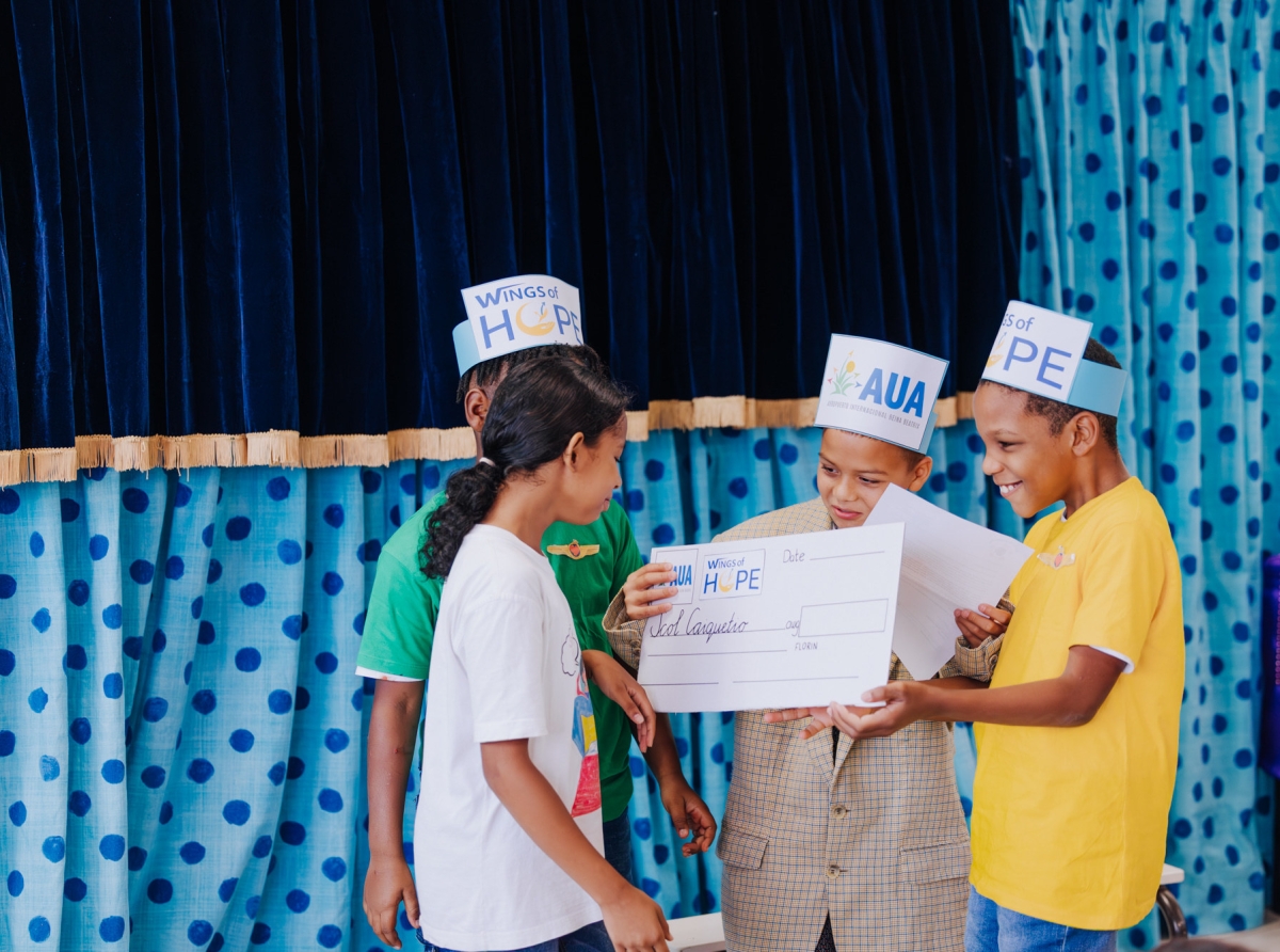 E miembronan di e team di AAA Wings of Hope a expresa nan gratitud na e docentenan y e alumnonan pa un celebracion memorabel y special. Ta e momentonan aki ta recorda nos cu cada esfuerso y contribucion, sin importa con chikito of grandi, ta trece felicidad y speransa pa esnan cu mas tin mester di dje. Teniendo na cuenta cu Responsabilidad Social Corporativo ta parti di e strategia di sostenibilidad di AAA y e balornan di e compania, Wings of Hope lo sigui en busca di proyectonan a largo plaso cu ta beneficia henter e comunidad y ta curasha otro organisacionnan pa haci mescos.