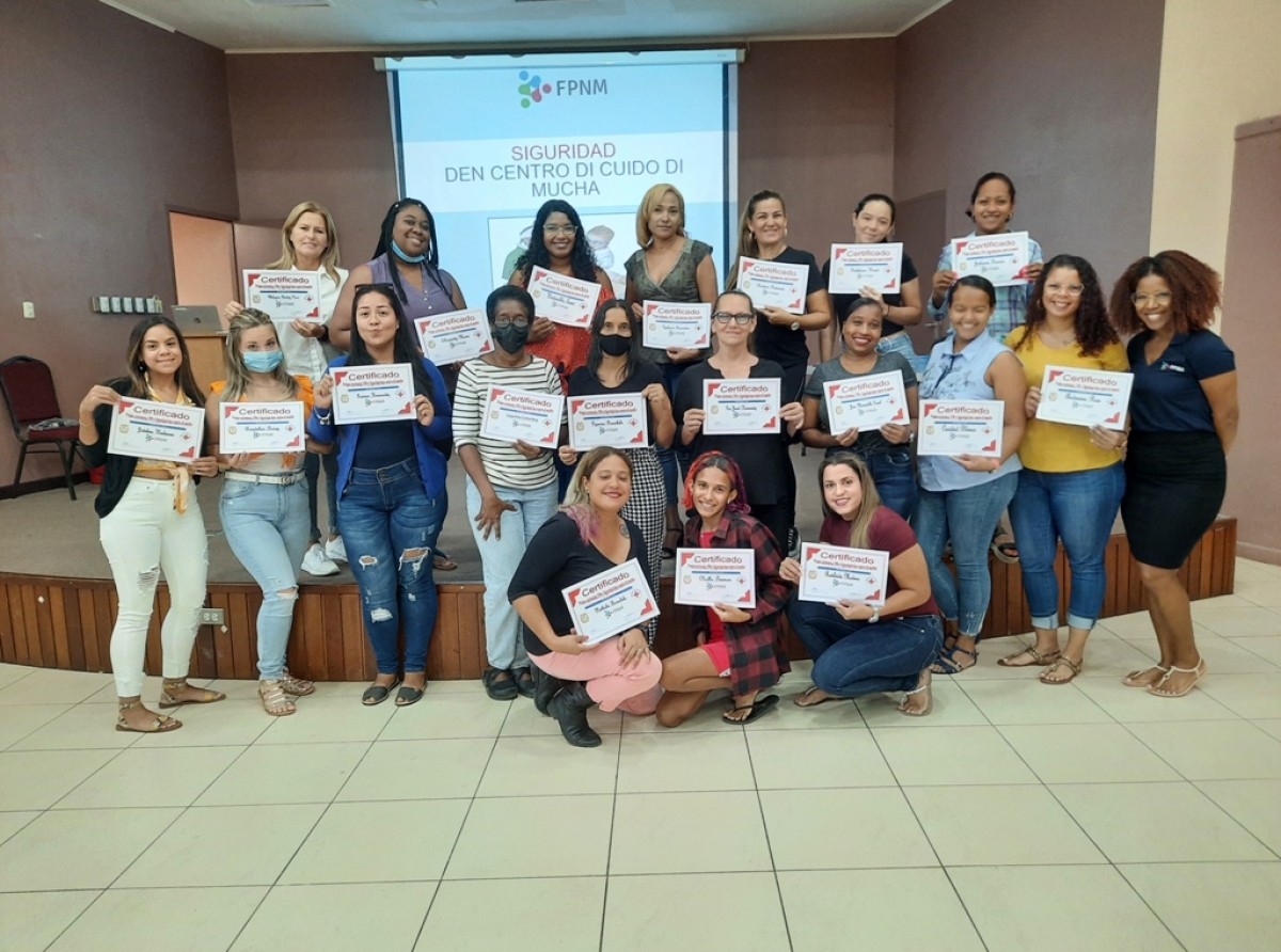 ORANJESTAD (AAN): Recientemente 20 trahador pedagogico di diferente centro di cuido y guia di mucha a termina e curso di Prome Asistencia/CPR y Siguridad.